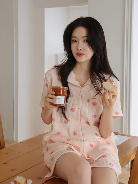 Juuneedu Peach Cotton Short Sleeves Pajamas Set 短袖睡衣套裝