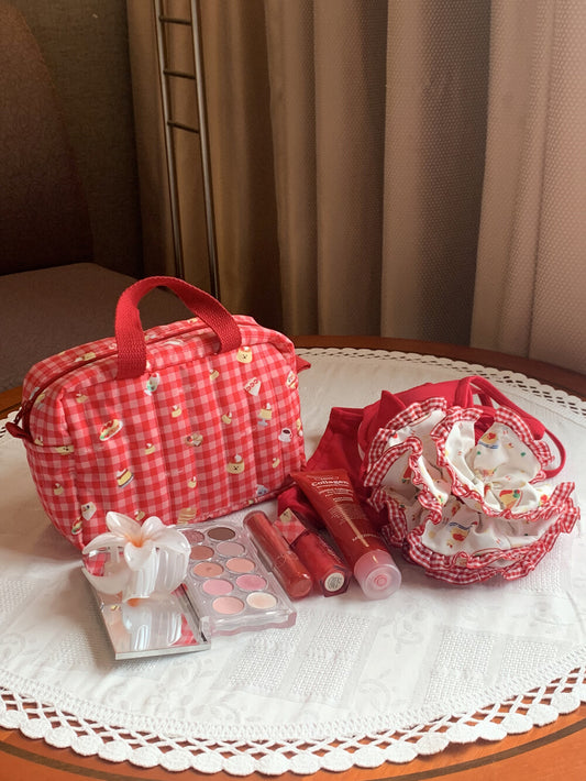 Jellyland Signature Pouch - Red check 手提化妝袋