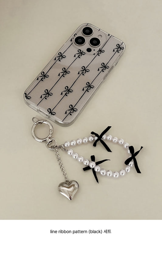 【Set】Line Ribbon Pattern (透明款)+手機繩