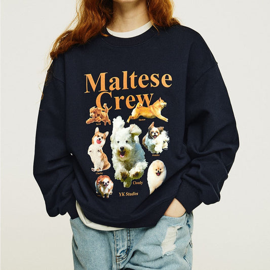【LE SSERAFIM 金采源同款】Wai Kei Maltese Crew Sweatshirts (Grey/Navy)